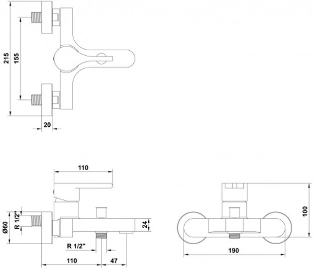 межосевое расстояние крепления смесителя 155мм.,