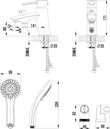 Смеситель для ванны и душа LEMARK Atlantiss LM3215C предназначен для установки на борт ванны для подачи горячей и холодной воды. Серия Atlantiss выполнена в традиционном стиле. Модель оснащена душевым гарнитуром, включающим в себя однорежимную лейку, настенный поворотный держатель и двухметровый шланг повышенной прочности. Изделие выполнено из высококачественной латуни, отличающейся прочностью, долговечностью и устойчивостью к перепадам температур.