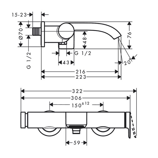 Длина излива: 21.6 см