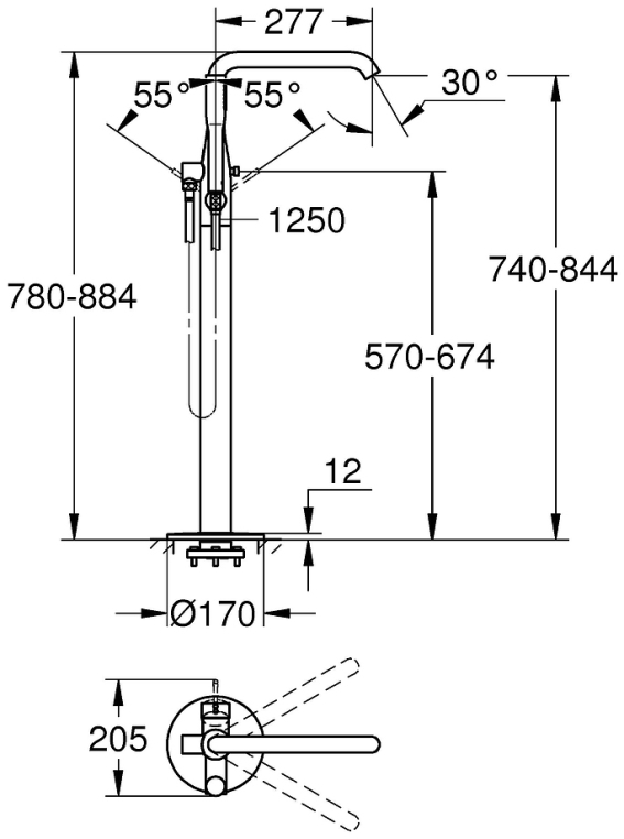 Внимание, для установки необходима встраиваемая часть напольного смесителя GROHE (45984001)