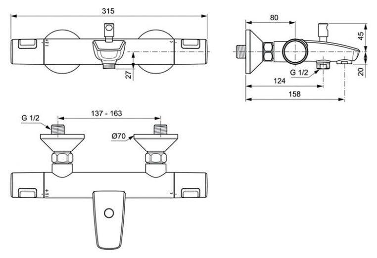 Имеет встроенный девиатор, автоматически переключающий поток с душа на излив при закрытии воды