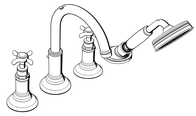 Смеситель на край ванны, на 4 отверстия, внешняя часть.