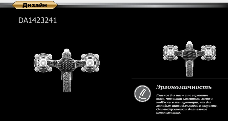 Блестящий внешний вид двухручкового смесителя с обновленными ручками привлекает своим внешним видом, послужит прекрасным дополнением классической ванной комнаты.