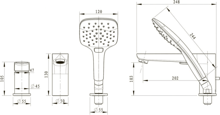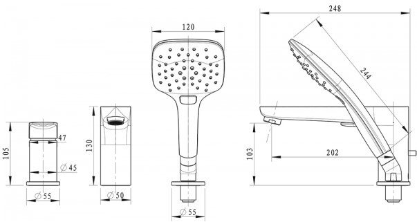 Встраиваемый смеситель на 3 отверстия на борт ванны Bravat Iguassu F5173218CP-1-RUS