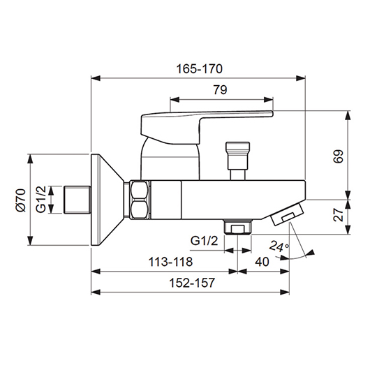 - Переключение ванна/душ: ручное (позволяет использовать функцию “душ” даже при очень низком давлении воды)