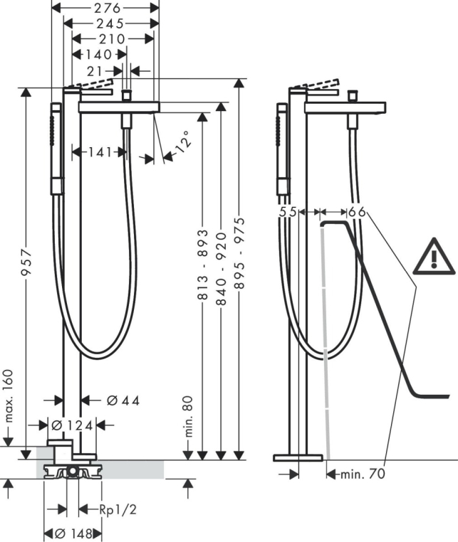 Напольный смеситель для ванны Hansgrohe Finoris 76445000, хром
