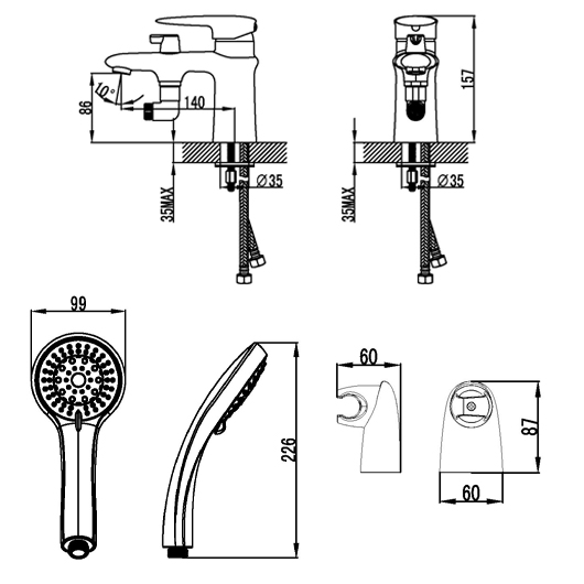 В комплект поставки входят крепления, настенный держатель, душевой шланг, душевая лейка, гибкая подводка, переключатель потоков и аэратор.