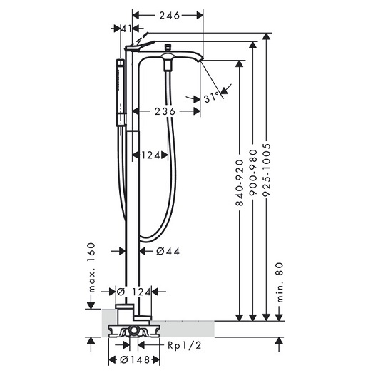 Смеситель напольный для ванны Hansgrohe Vivenis 75445000 хром