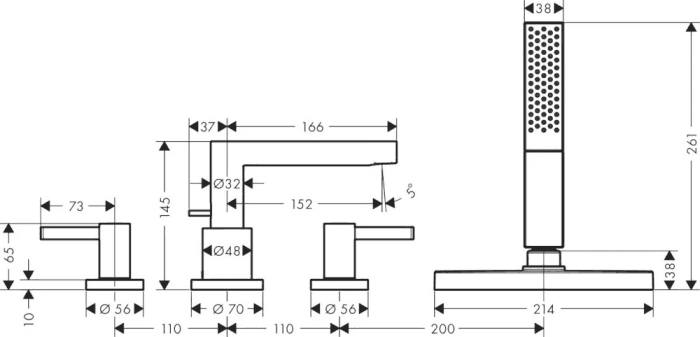 Смеситель на край ванны Hansgrohe Finoris 76444670 на 4 отверстия, с sBox