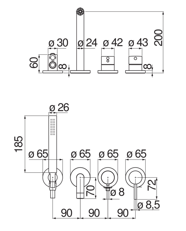 диаметр лейки ручного душа - 26 мм