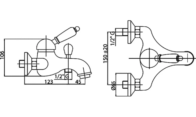 Смеситель для ванны выполненный в классическом стиле с покрытием золотом 24 карата. Оснащен аэратором для смягчения струи. Ручка белая.