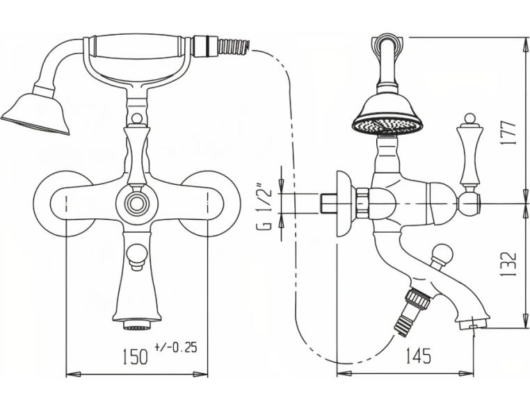Смеситель для ванны и душа Cezares MARGOT-VDM-03/24-M золото ручки золото