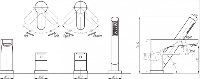 Смеситель на борт ванны с ручным душем Cezares LACONICO-C-BVDM-01 хром