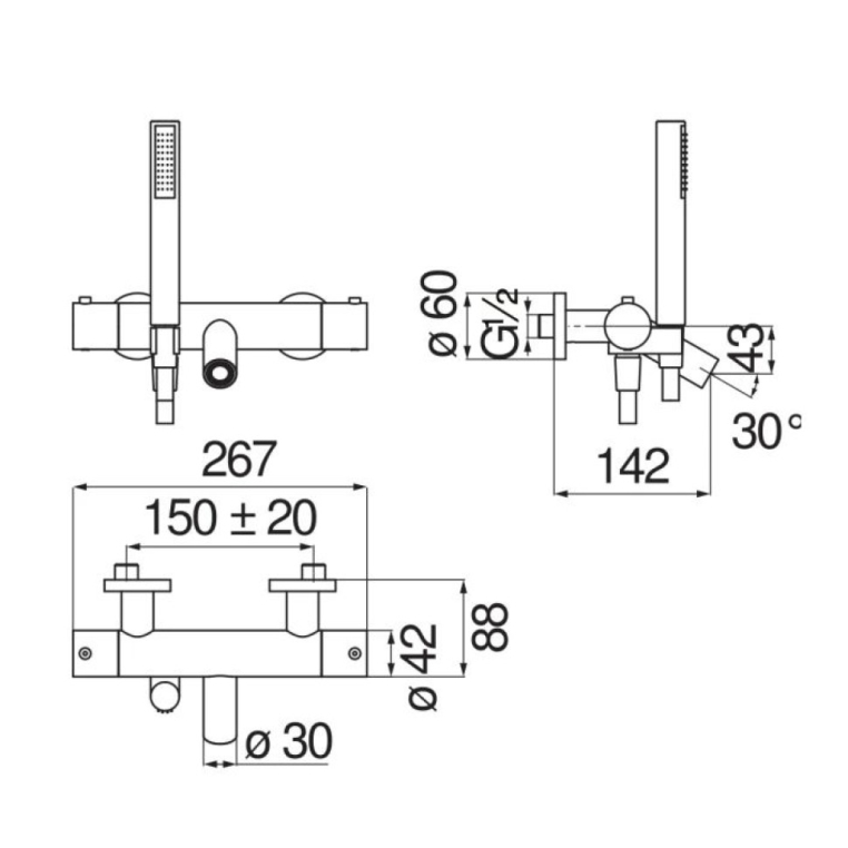 Смеситель для ванны Nobili Velis VE125010/2CR с термостатом, Chrome