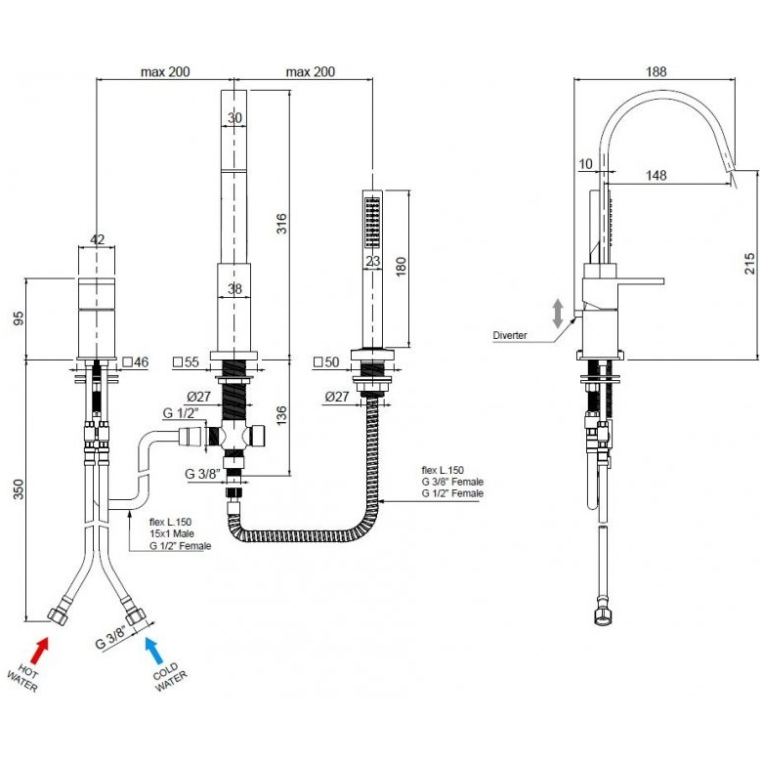 Смеситель Cezares Unika UNIKA-BVD3-03/24 на борт ванны золото