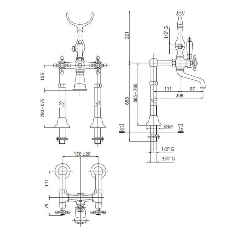 Напольный смеситель для ванны Cezares Golf GOLF-VDP2-01-Bi хром