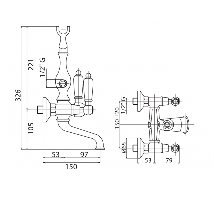 Смеситель для ванны с душем Cezares First FIRST-VD-02-Bi бронза, ручки белые