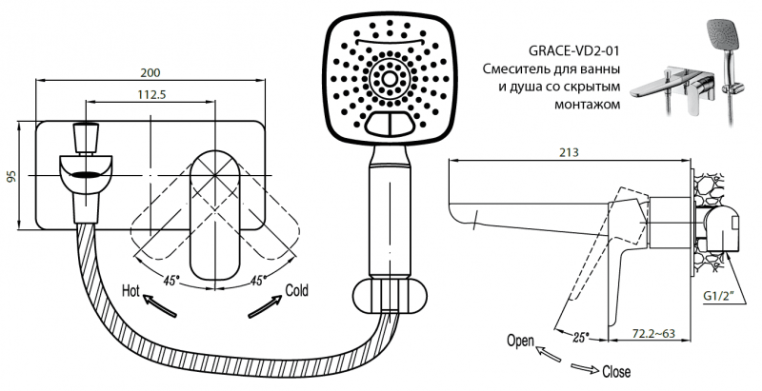 Cмеситель для ванны и душа встраиваемый Cezares GRACE-C-VD2-01 хром