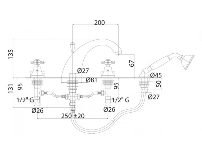 Смеситель на борт ванны с ручным выдвижным душем Cezares Lord LORD-BVD-03/24-Bi золото