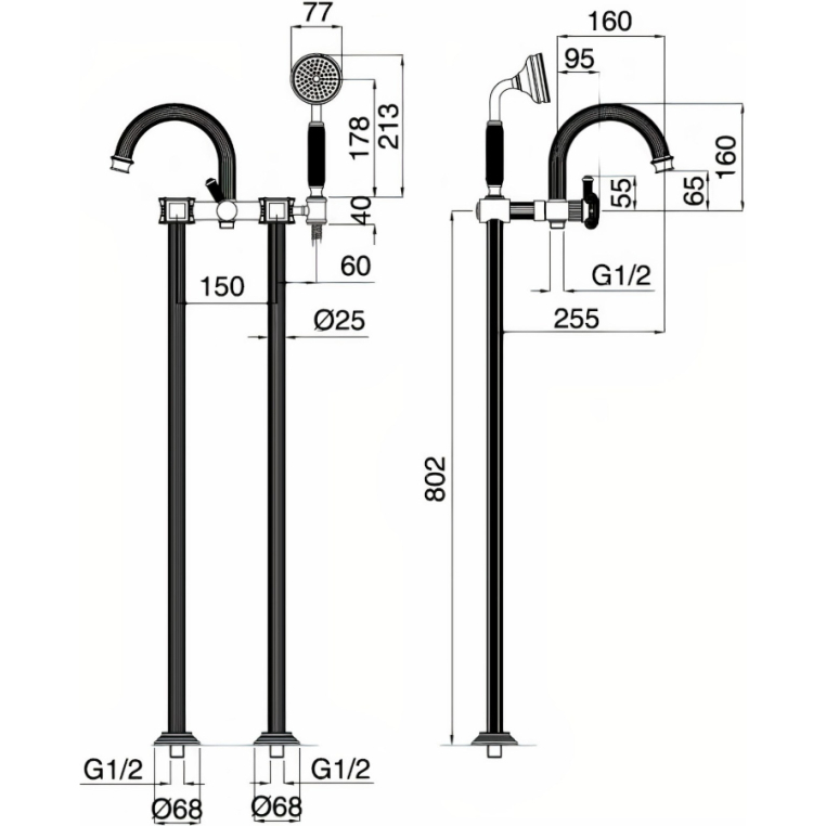 Напольный смеситель для ванны Cezares Aphrodite APHRODITE-VDP-01-M хром