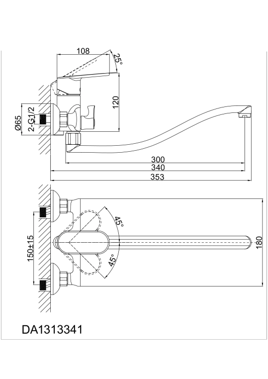 Смеситель для ванны с душем D&K Rhein.Speyer DA1313341 длинный излив хром