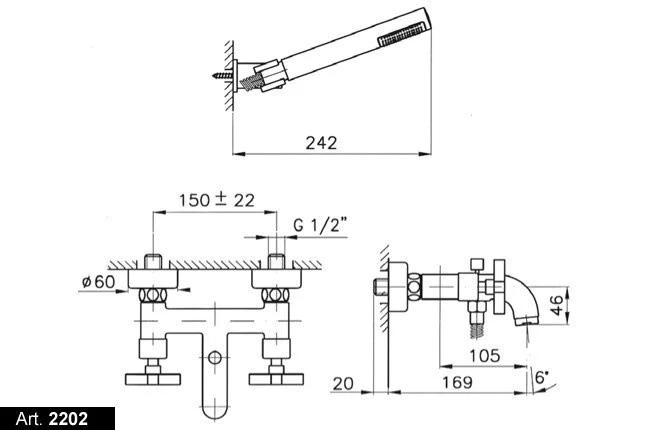 Смеситель для ванны NICOLAZZI PETIT MONT BLANC 1402BZ78, двухвентильный настенный с ручным душем, дополнительный держатель для душа настенный, цвет бронза, декор PETIT MONT BLANC .