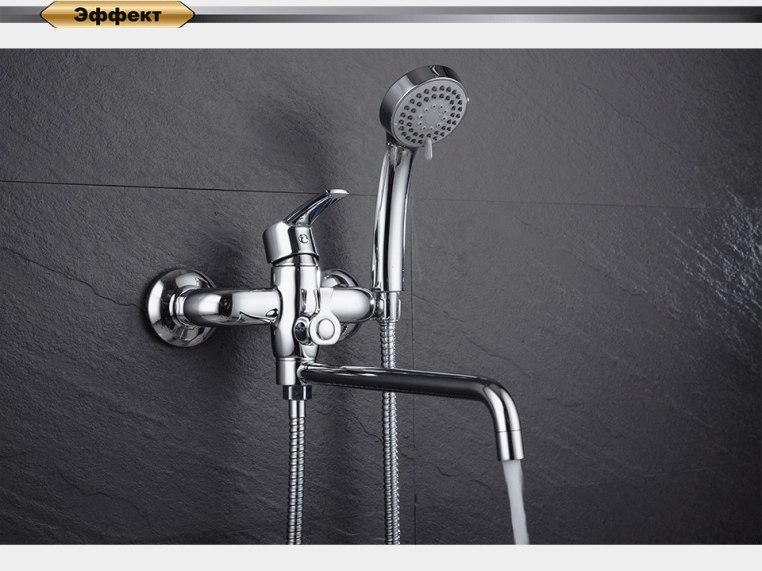 - Душевая трехрежимная лейка и шланг длинной 150 см уже в комплекте.