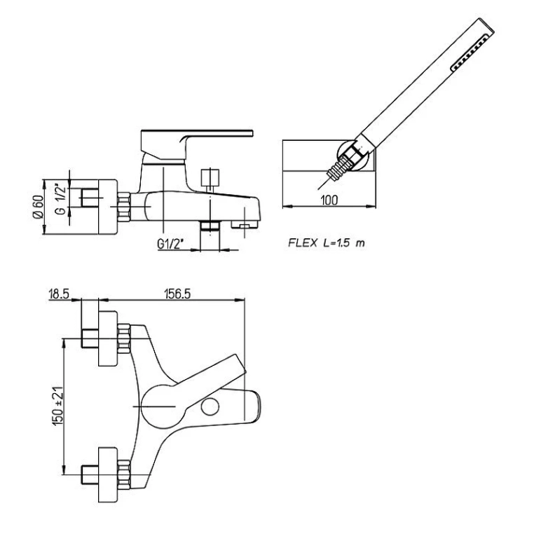 - Ручной душ 1 режим струи.