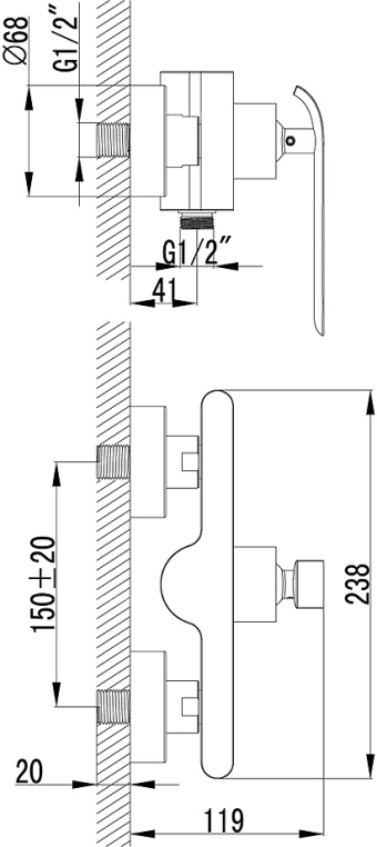 В комплект поставки входят крепления, эксцентрики, настенный держатель, душевой шланг, душевая лейка и аэратор.