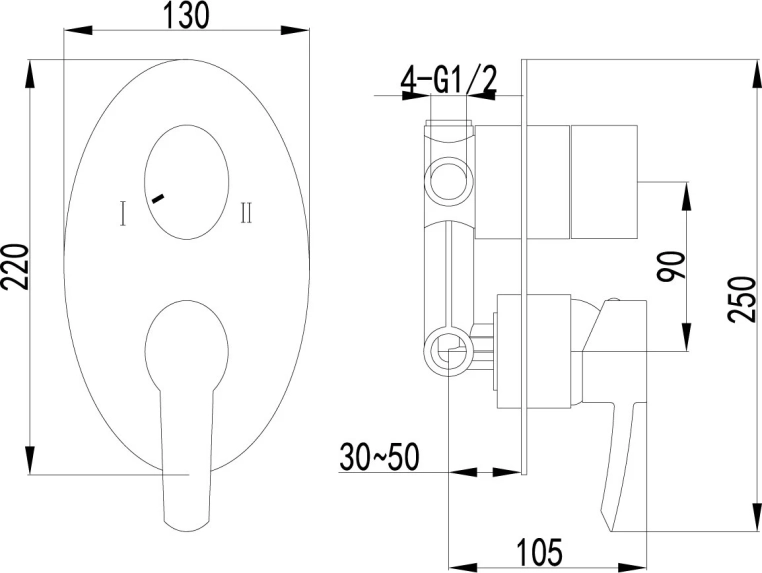 Смеситель для ванны встраиваемый LEMARK Atlantiss LM3227C двухпозиционный.