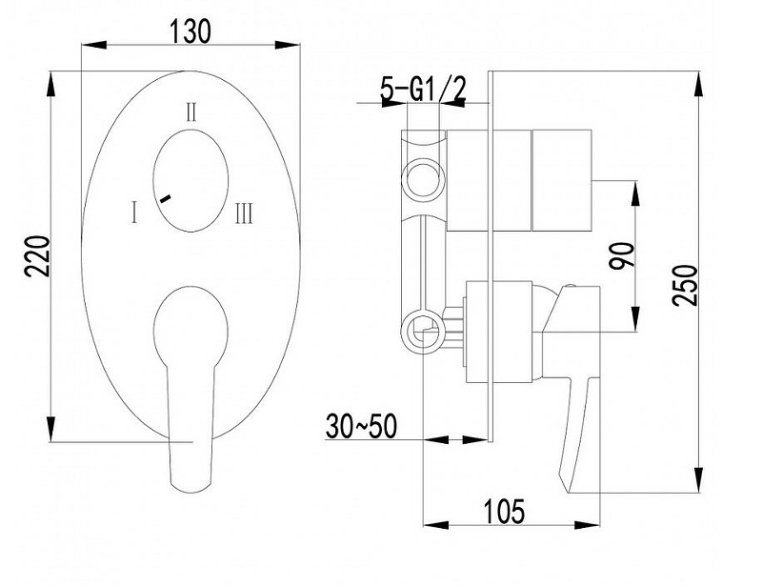 Смеситель для ванны встраиваемый LEMARK Atlantiss LM3228C трехпозиционный