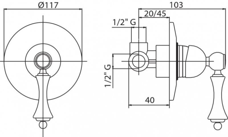 Встраиваемый смеситель для душа Cezares Margot MARGOT-DIM-03/24-Bi золото ручка белая
