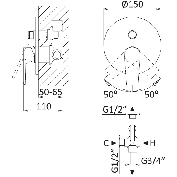Смеситель Cezares NAUTIC-VDIM-01 для душа с переключателем встраиваемый хром