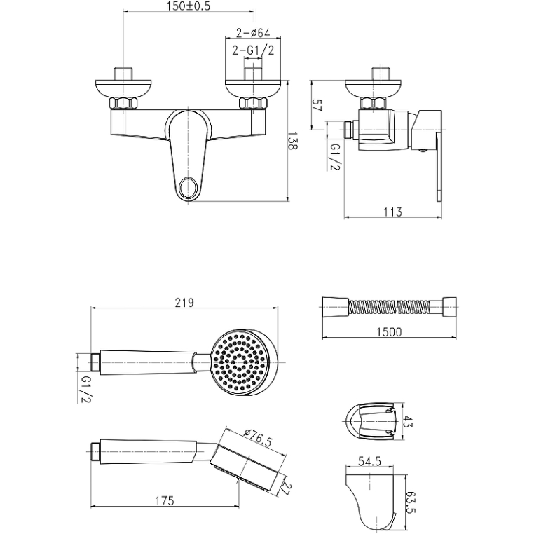 Смеситель для душа Cersanit Cari латунь хром душ. лейка (63029)