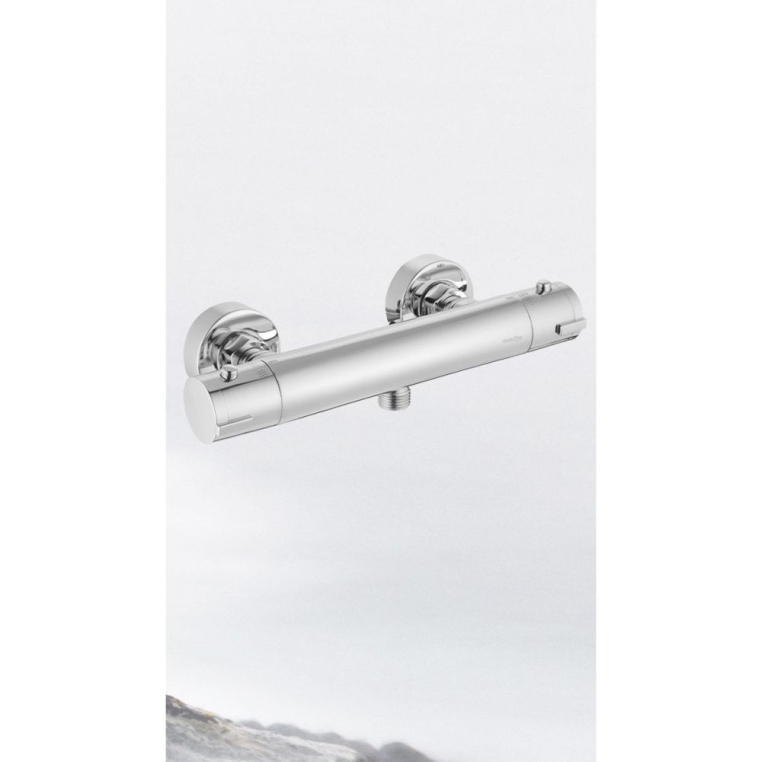 Термостат для душа Swedbe Mercury — надёжный смеситель от шведского бренда Swedbe. Оснащён «умным» картриджем. Благодаря обратным клапанам решается проблема «выдавливания» холодной воды горячей из-за разницы давления, когда температуру воды отрегулировать невозможно. Клапаны чётко разделяют холодную и горячую воду, исключая подмес. Это важно в тех домах, где есть сильная разница давления в стояках. В моделе предусмотрен ограничитель температуры, предустановленный на отметке 38 градусов, что считается идеальным значением для комфортного мытья. Можно не бояться обжечься при повороте рукоятки температуры, что актуально для семей с маленькими детьми.