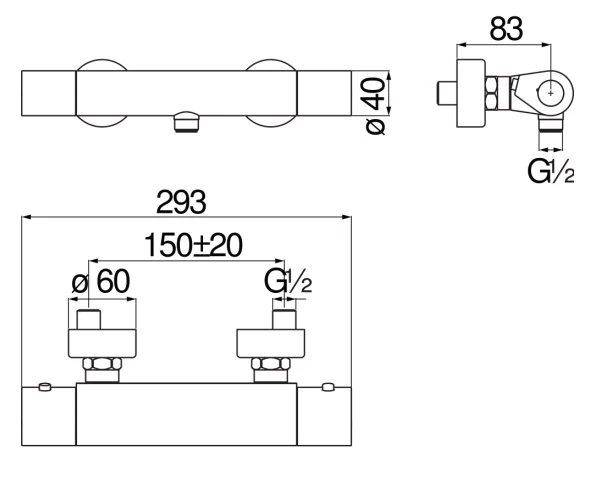 Смеситель для душа Nobili Seven SE124030BM Velvet black с термостатом, матовый черный