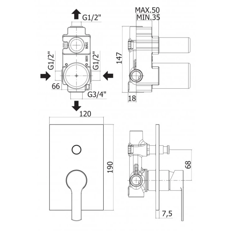 Смеситель для душа Cezares Ovest OVEST-VDIM-01 с переключателем, встраиваемый, хром