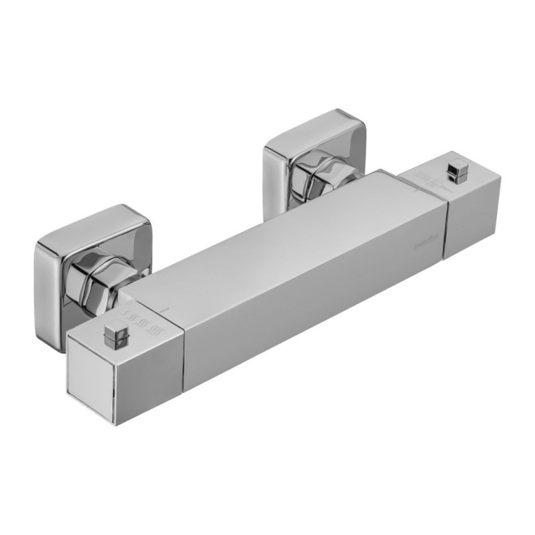 Термостат для душа Swedbe Mercury — надёжный смеситель от шведского бренда Swedbe. Оснащён «умным» картриджем. Благодаря обратным клапанам решается проблема «выдавливания» холодной воды горячей из-за разницы давления, когда температуру воды отрегулировать невозможно. Клапаны чётко разделяют холодную и горячую воду, исключая подмес. Это важно в тех домах, где есть сильная разница давления в стояках. В моделе предусмотрен ограничитель температуры, предустановленный на отметке 38 градусов, что считается идеальным значением для комфортного мытья. Можно не бояться обжечься при повороте рукоятки температуры, что актуально для семей с маленькими детьми.
