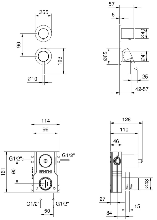 Смеситель для душа Fantini NOSTROMO SMALL 5013G481B, наружная часть