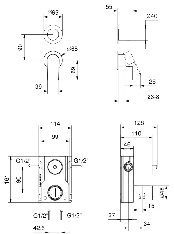 Смеситель для душа Fantini MYO 6113V681B, наружная часть