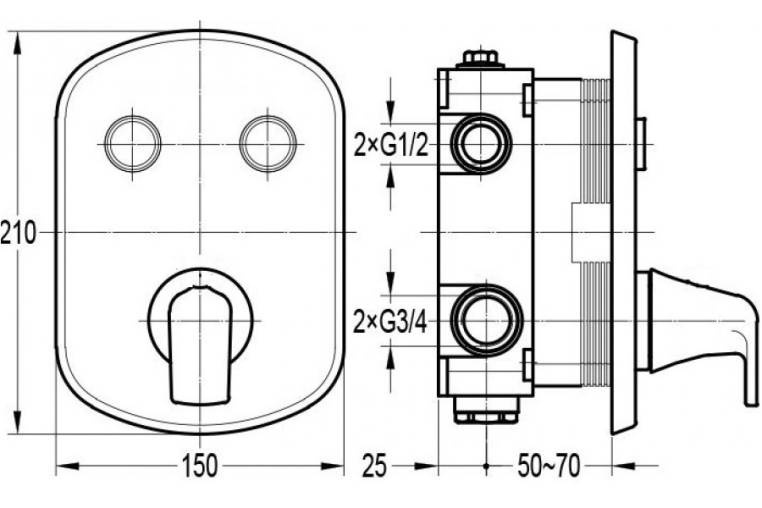 Встраиваемый двухпозиционный смеситель для душа Cezares Globo GLOBO-F-VDIM2-B-01 хром