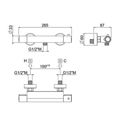 Термостатический смеситель для душа Carimali Rigoletto 21505-CR хром