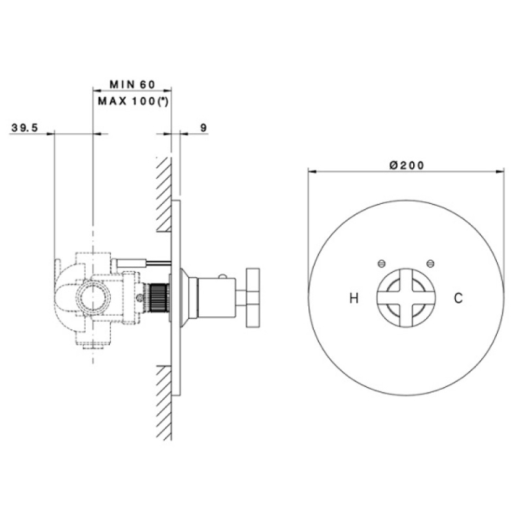 Наружная часть встраиваемого термостатического смесителя NICOLAZZI MONTE CROCE 4914CR27, цвет хром. Встроенная часть арт. 4913 приобретается отдельно.