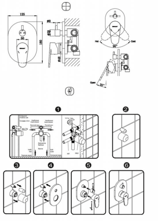 Встраиваемый смеситель в стену 3-функц (латунное тело в комплекте) Bravat Eler FB848238CP-3-RUS