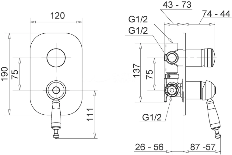 Смеситель скрытого монтажа 3-позиционный с девиатором Migliore Oxford