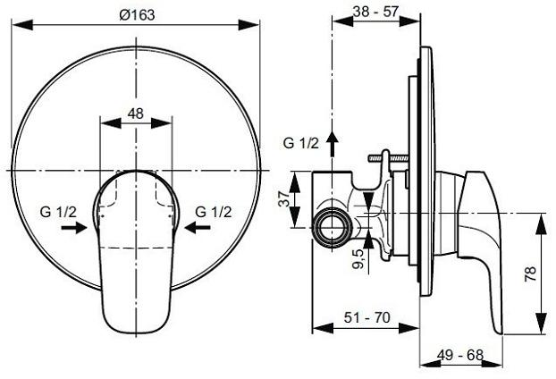 - встраиваемый смеситель для душа, комплект №1 A1300NU (встраиваемая часть) + комплект №2 (внешняя часть),