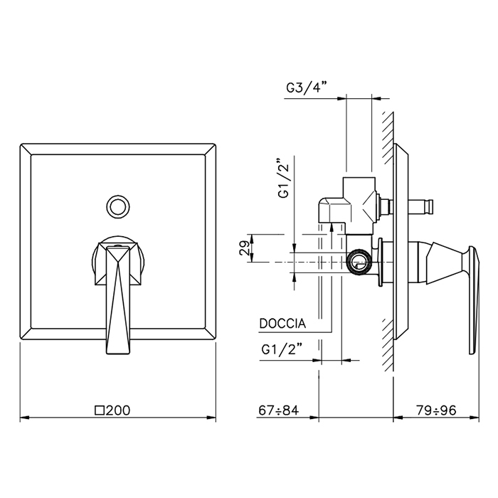 Смеситель для ванны-душа Nicolazzi Vincent 3006EXTCR35 встраиваемый