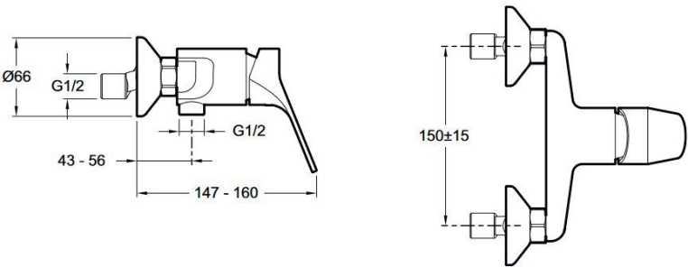 Однорычажный настенный смеситель для душа.