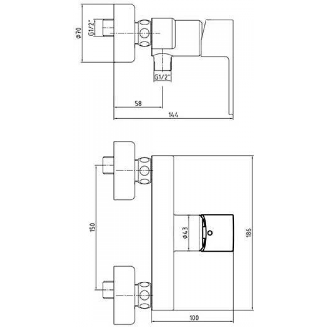 Ось выхода душа составляет 56 мм
