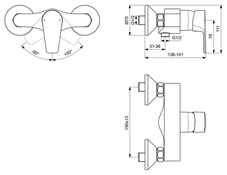 Смеситель настенный для душа Ideal Standard Cerafine D BC493AA